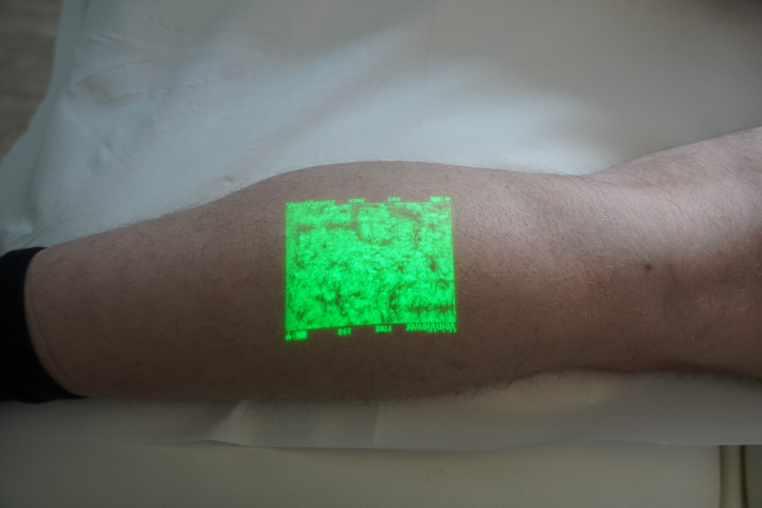Eine Kochsalzlösung in der entsprechenden Konzentration ist für den Körper völlig harmlos, denn beides, Wasser und Salz, ist im Körper vorhanden. Es wird also kein körperfremdes Mittel gespritzt. Mit einer Sonografie können wir vor der Behandlung die genaue Lage der Vene erkennen. Dazu benutzen wir den VeinViewer®, der mit unschädlichem Nah-Infrarotlicht (NIR) die Krampfader auf der Hautoberfläche anzeigt.